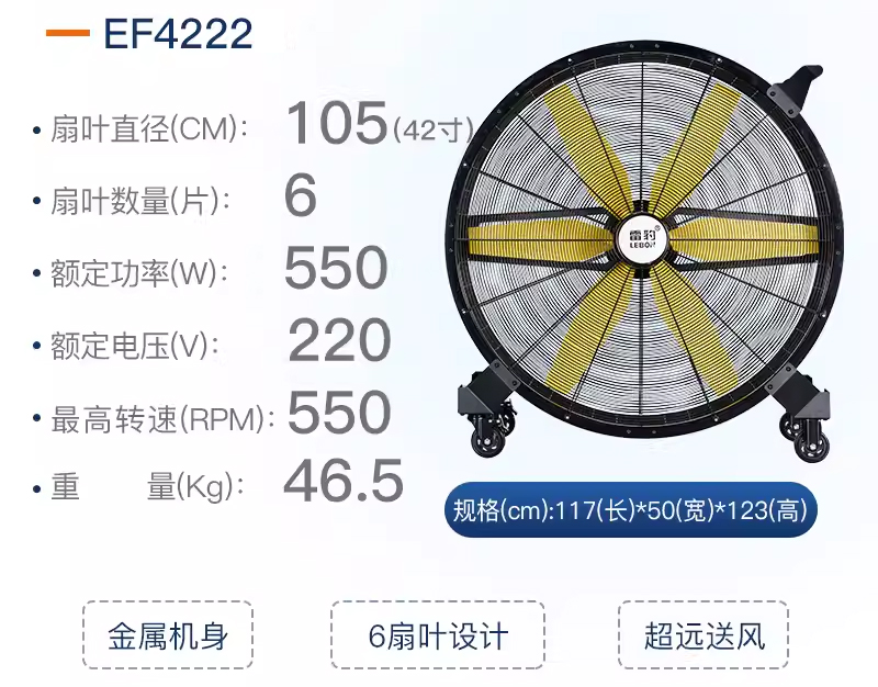 更新時間:2024/1/4 14:25:20雷豹移動大風扇EF4222介紹