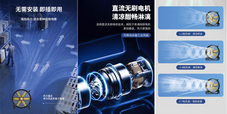 雷豹工業(yè)大風(fēng)扇是一種專門為工業(yè)和商業(yè)場所設(shè)計的高效風(fēng)扇,泛應(yīng)用于各種不同的場所,包括工廠、大型倉庫、商場、超市、體育館和停車場等,安裝雷豹工業(yè)大風(fēng)扇可以有效地改善環(huán)境和空氣質(zhì)量,保護設(shè)施和消費者的利益。超大功率,大幅度提升出風(fēng)量,6片扇葉采用耐用輕便的增強尼龍材質(zhì),直流無刷電機,免維護延長使用壽命,最低轉(zhuǎn)數(shù):150RPM 功率:25W 最低噪音:49分貝(參數(shù)采集型號:EF4822D 檔位:1檔 聲音采集距離:1.6米),加厚腳輪設(shè)計4個5寸中型載重腳輪,耐用的金屬材質(zhì)結(jié)構(gòu),防護網(wǎng)間隙9mm,正面承重50KG噴塑工藝,7檔便捷機械旋鈕開關(guān),控制自如,側(cè)面當(dāng)向扶手,方便隨時移動,自帶剎車腳輪,固定方便避免滑動。