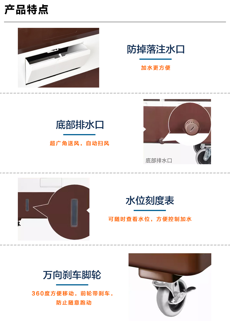 產(chǎn)品特點(diǎn):1、60升大水箱超長(zhǎng)時(shí)間作業(yè)滿足工業(yè)商業(yè)降溫需求